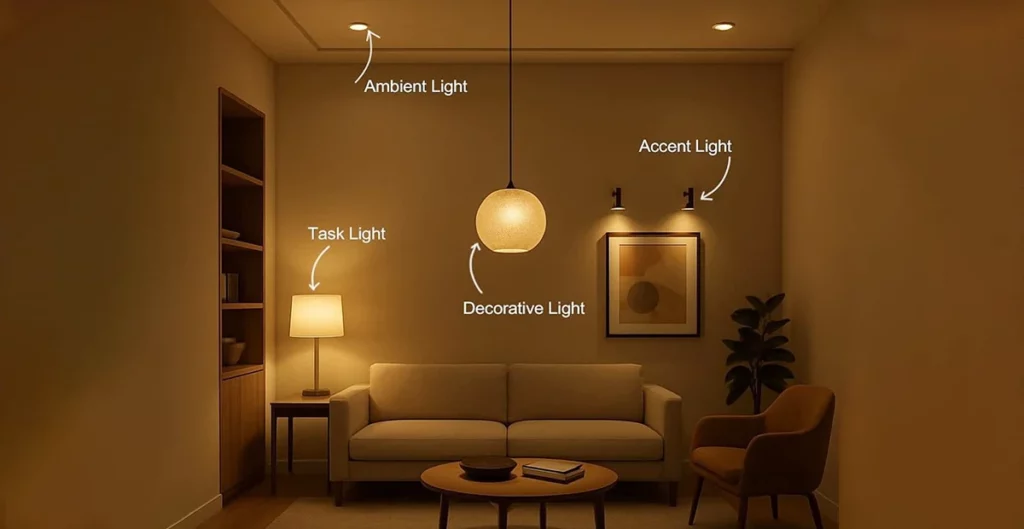 ۵. اصول لایهبندی نورپردازی در طراحی داخلی