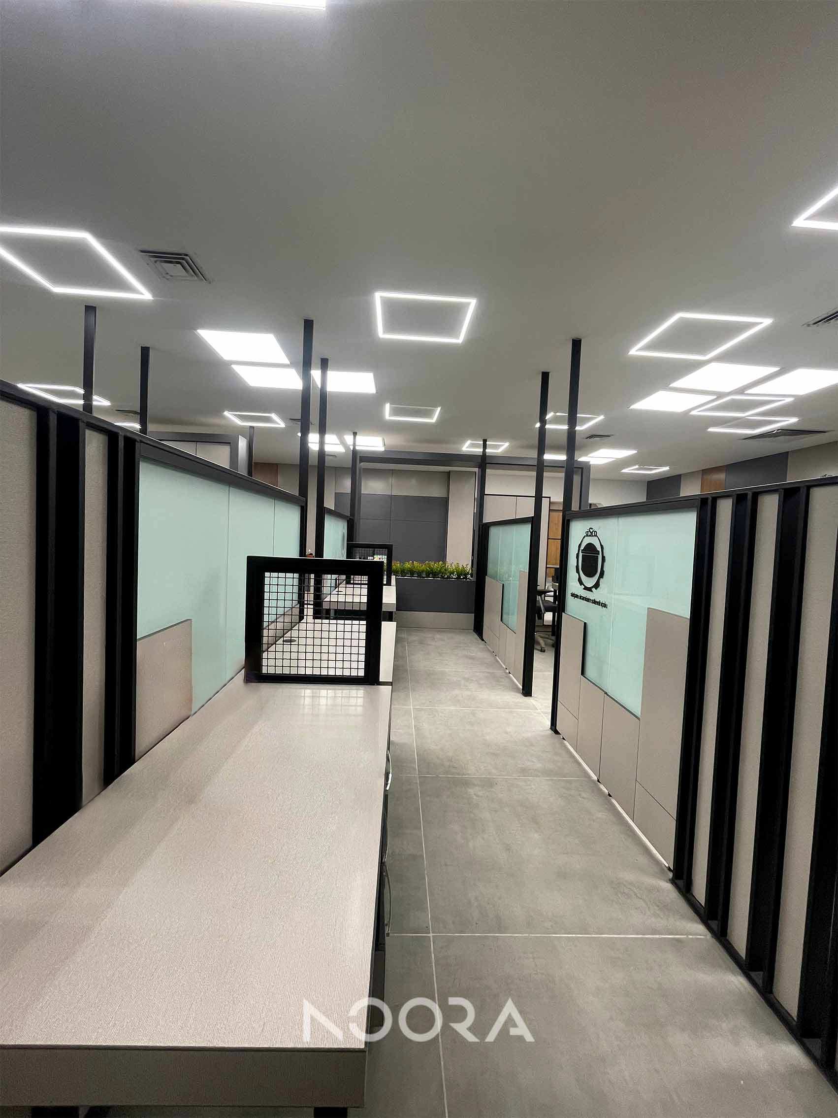 ساختمان فولاد توسط گروه معماری شهرزاد اسدی طراحی شده است. این ساختمان بسیار زیبا در شهر بردسیر کرمان واقع شده و شرکت مهندسی روشنایی نورا به عنوان تامین کننده ی سیستم روشنایی در این پروژه افتخار همکاری داشته است. در این پروژه از چراغ های متنوعی از جمله پنل سقفی مربع مدل های اسکای و میکرو ، صفحه کشسان و چراغ ریلی پورتو استفاده شده است. در ادامه تصاویر مربوط به این پروژه ی زیبا را مشاهده خواهید کرد